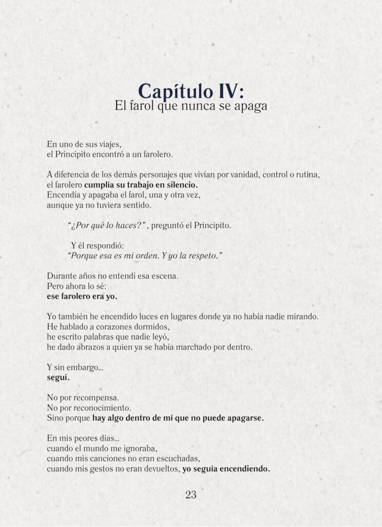 El Principito ya no se va es el testimonio luminoso de un alma que dejó de huir de sí misma.